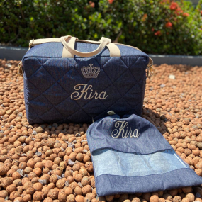 O kit acompanha bolsa e necessaire, no tamanho que desejar. Ideal para o dia-a-dia, passeio e viagens com seu baby!
