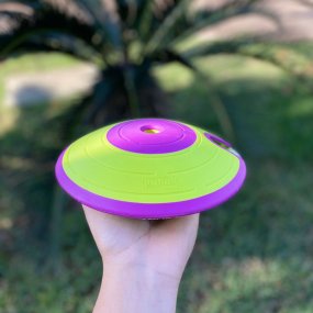 KONG Jumbler Flinger é um brinquedo feito para brincadeiras interativas. O formato aerodinâmico e sua estrutura que permite quicar muito são estimulantes à uma brincadeira super divertida e interativa. A bola de tênis aumenta a diversão. Perfeito para brincadeiras de chacoalhar e interativas como jogar e buscar, etc. Possui apito para estimular ainda mais o seu cão.