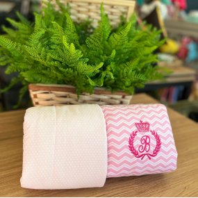 Kit com travesseiro, lençol e edredon. Tudo para deixar o cantinho do seu baby confortável, organizado e lindo! Você pode escolher a cor do tecido e personalizar com a inicial do seu baby!