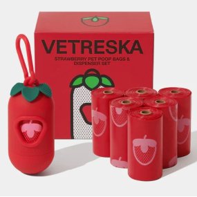 Conjunto Cata Caca Dispenser e Sacos Morango (1 dispenser + 7 rolos) Vetreska